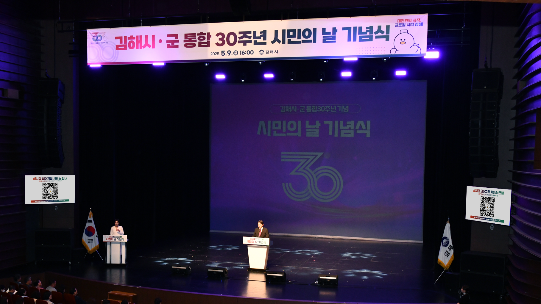 통합 김해시의 과거 30년을 되돌아보고 미래 30년을 함께 얘기함으로써 지역민 정서 통합 및 지역 자긍심 고취하기 위한 기념식을 진행했습니다. 무대·음향 등 행사 인프라 구축과 의전·진행 동선 관리, 시상식 및 연출, 해외 교류도시 대표단을 위한 실시간 통번역 솔루션 운영을 위한 소프트웨어 제공까지 운영했습니다.