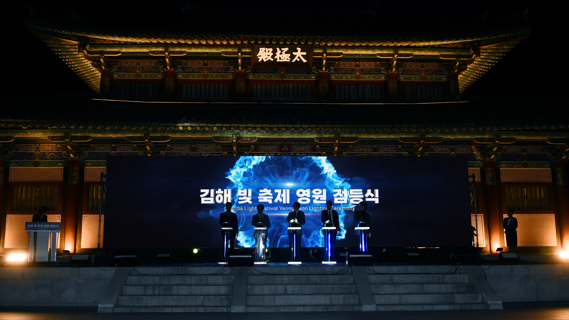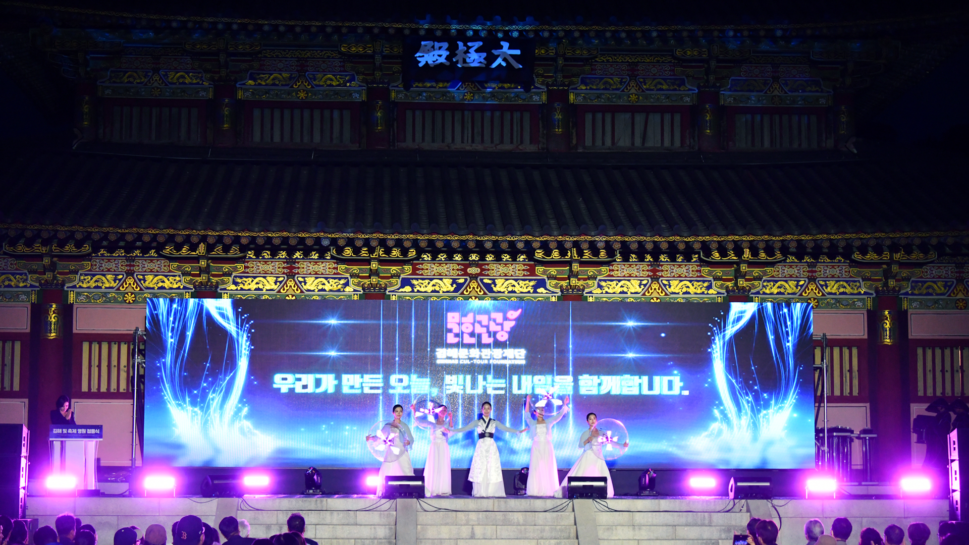 한국무용+미디어아트+홀로그램 기술이 결합된 뉴미디어 홀로그램 퍼포먼스 공연과 음향오행사상을 기반으로 오방색을 다양한 한국 전통 컨셉과 '빛'으로 표현한 미디어 퍼포먼스 공연으로 가야테마파크의 밤을 환하게 밝혔습니다.
