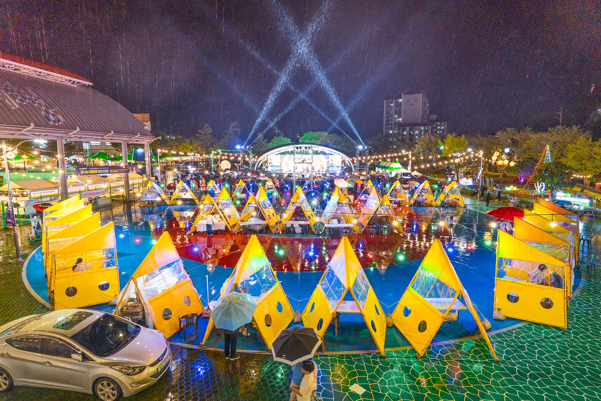 야간 경관조명과 공연, 플리마켓, 체험 프로그램을 결합해 산청의 여름밤을 즐길 수 있도록 기획된 지역 문화축제입니다. 무대·조명·음향 시스템 구축부터 공간 연출, 프로그램 진행, 참가자 안내와 현장 운영까지 전 과정을 총괄했습니다.